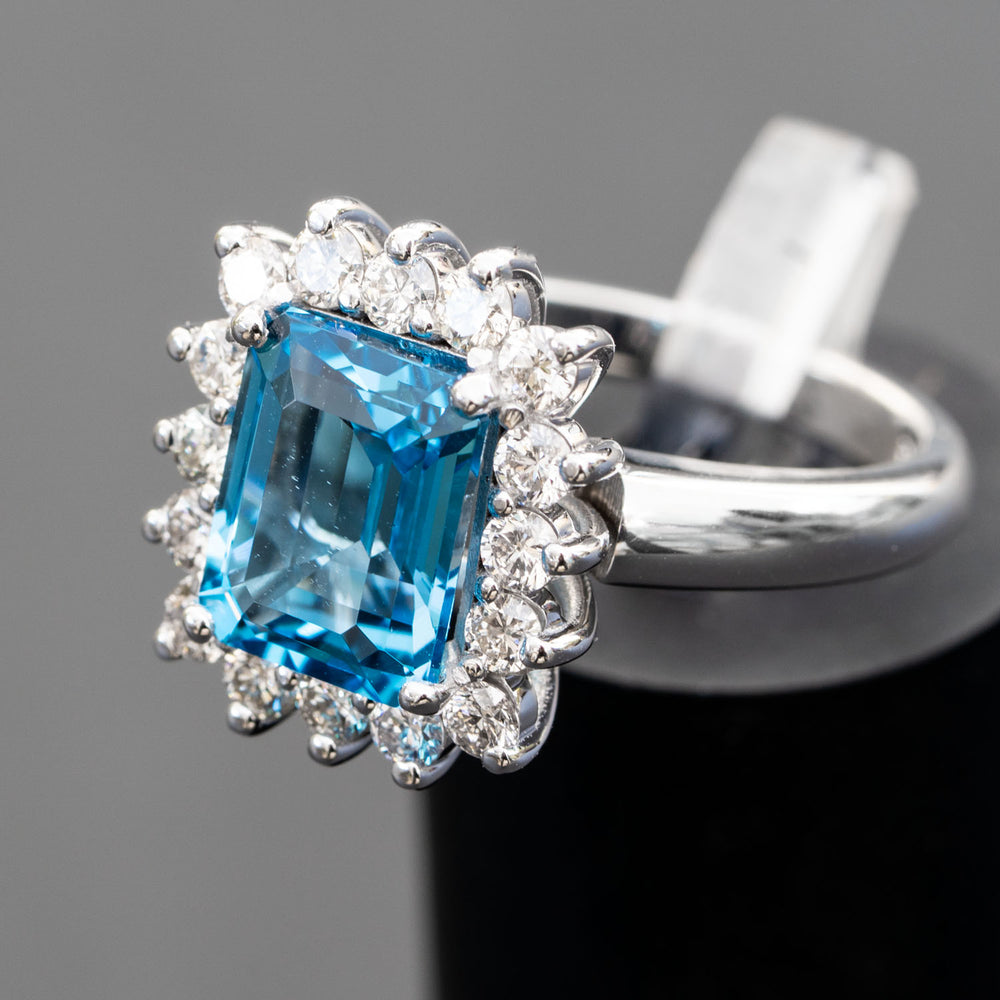Chloé - 3.93 carat natural swiss blue topaz ring with 0.83 carat natural diamonds