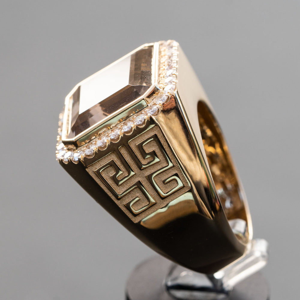 Julian - Men's Ring - 12.00 carat natural brown citrine with 1.01 natural diamonds