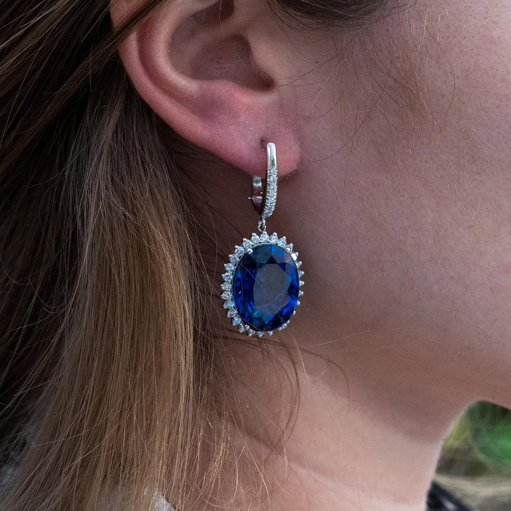 Rosana - 27.00 carat oval sapphire earrings with 1.32 carat natural diamonds