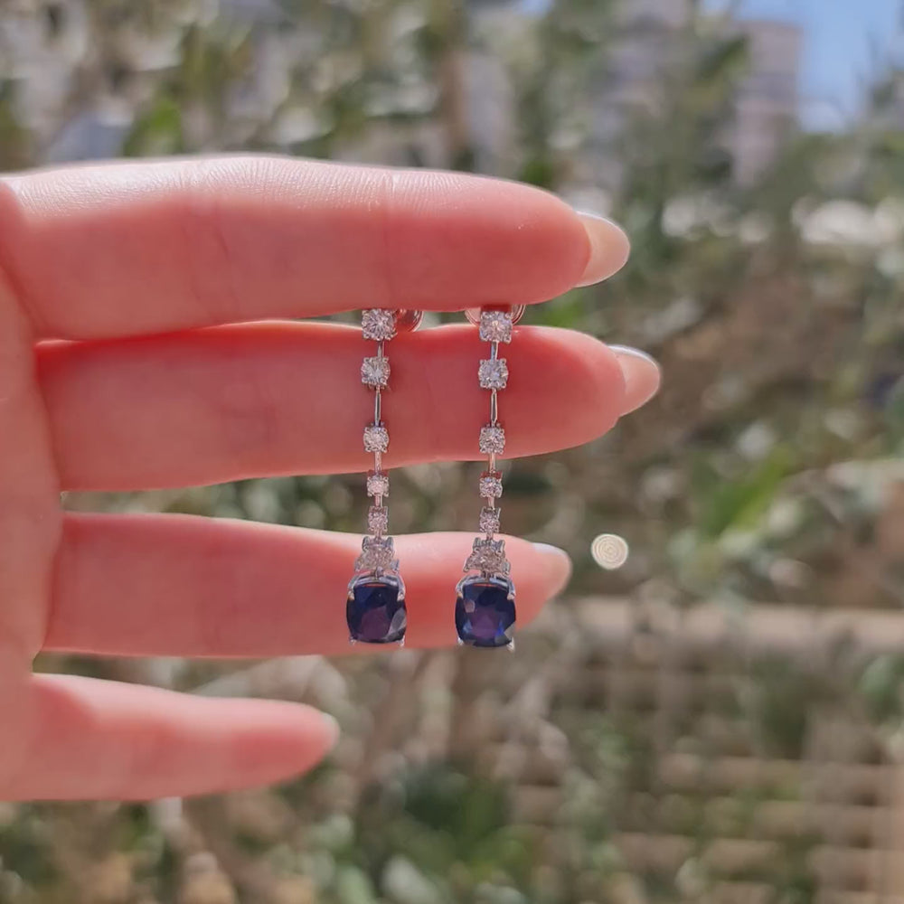 Gemstone Diamond Dangle Earrings, Sapphire Drop Diamond Earrings