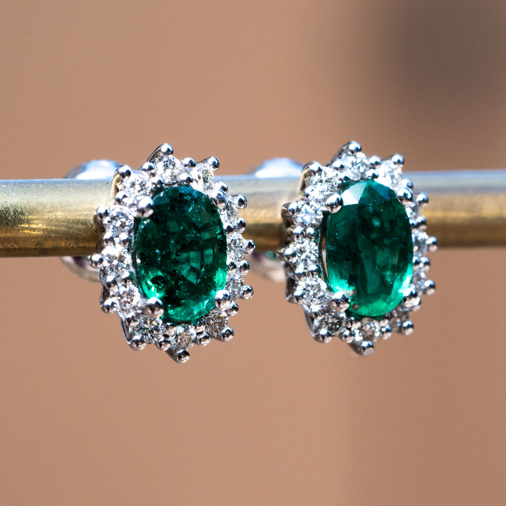 Hebe -0.86 carat natural emerald earrings, 2.36 carat natural diamonds, 18K white Gold