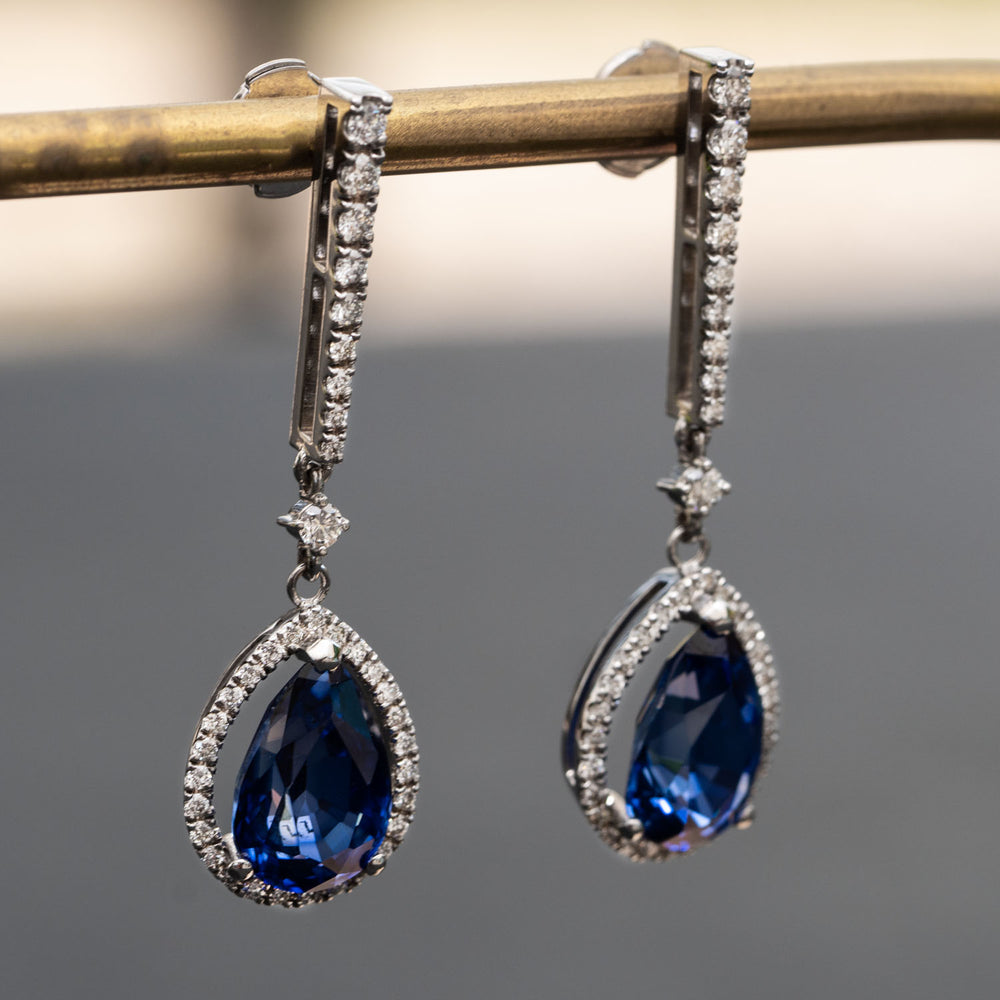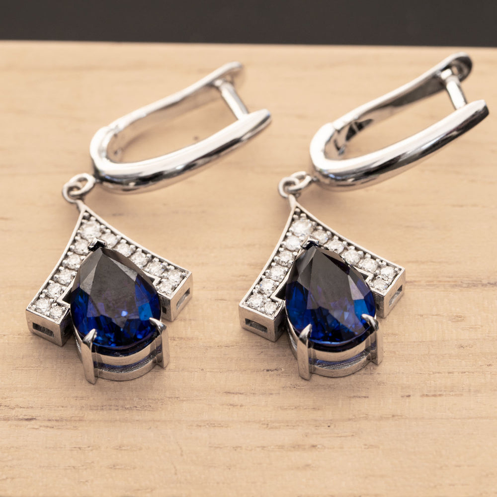 Holly - 7.80 carat pear sapphire earrings with 0.40 carat natural diamonds