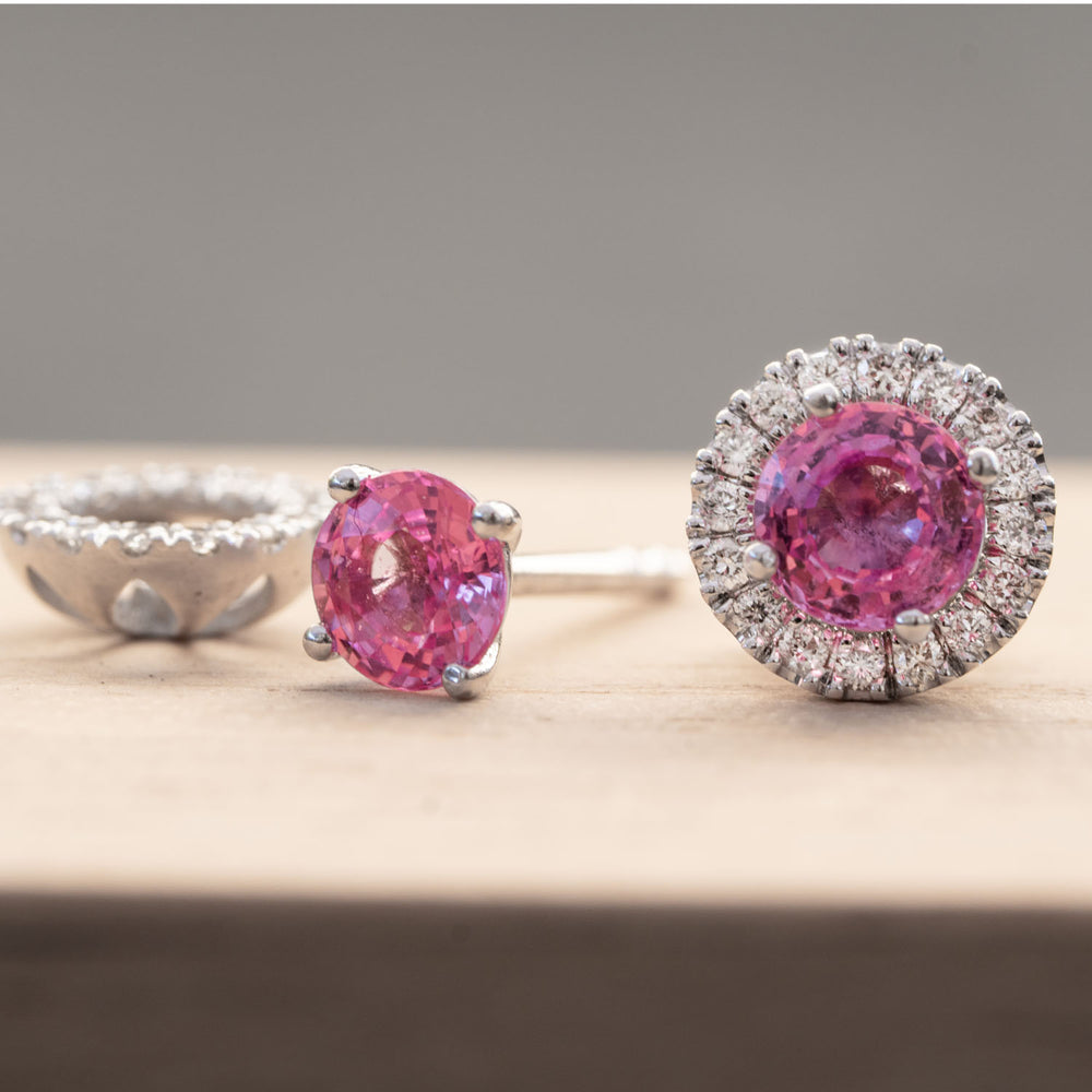 Aida - 1.20 carat round natural pink sapphire earrings with 0.20 carat natural diamonds - 2 IN 1