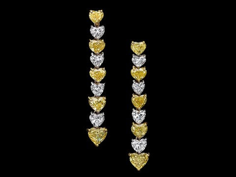 Francine - 7.94 carat natural heart diamond earrings, Top white and fancy yellow diamonds