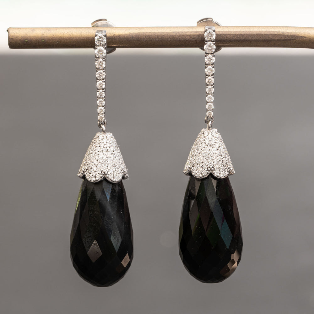 Shira - 28.00 carat pear Topaz earrings with 1.35 carat natural diamonds