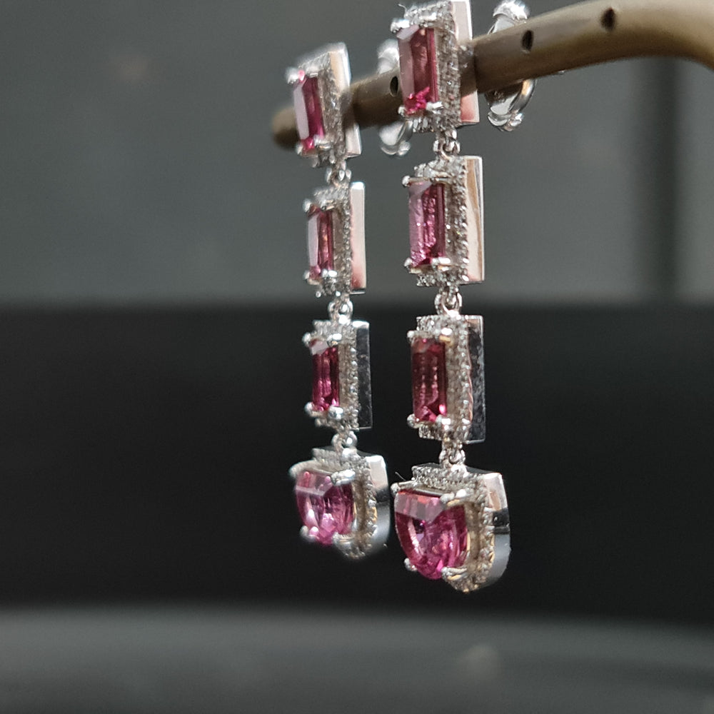 Selena - 7.20 carat pink Tourmaline earrings with 1.18 carat natural diamonds