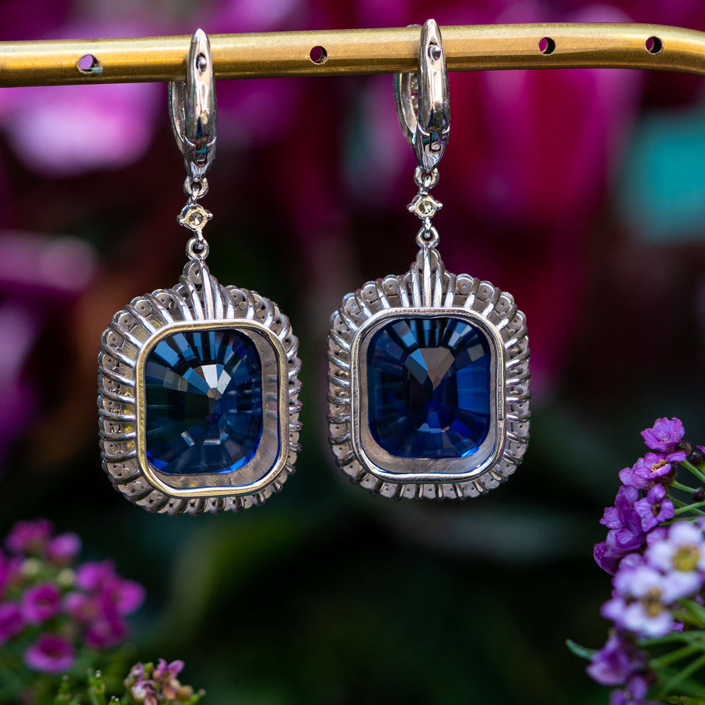 Micola - 37.25 carat cushion sapphire earrings with 1.75 carat natural diamonds