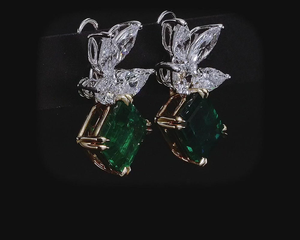 6.03 Carat Emerald Cut Emerald Earrings with 2.95 Carat Natural Pear and Marquise Shaped Diamonds
