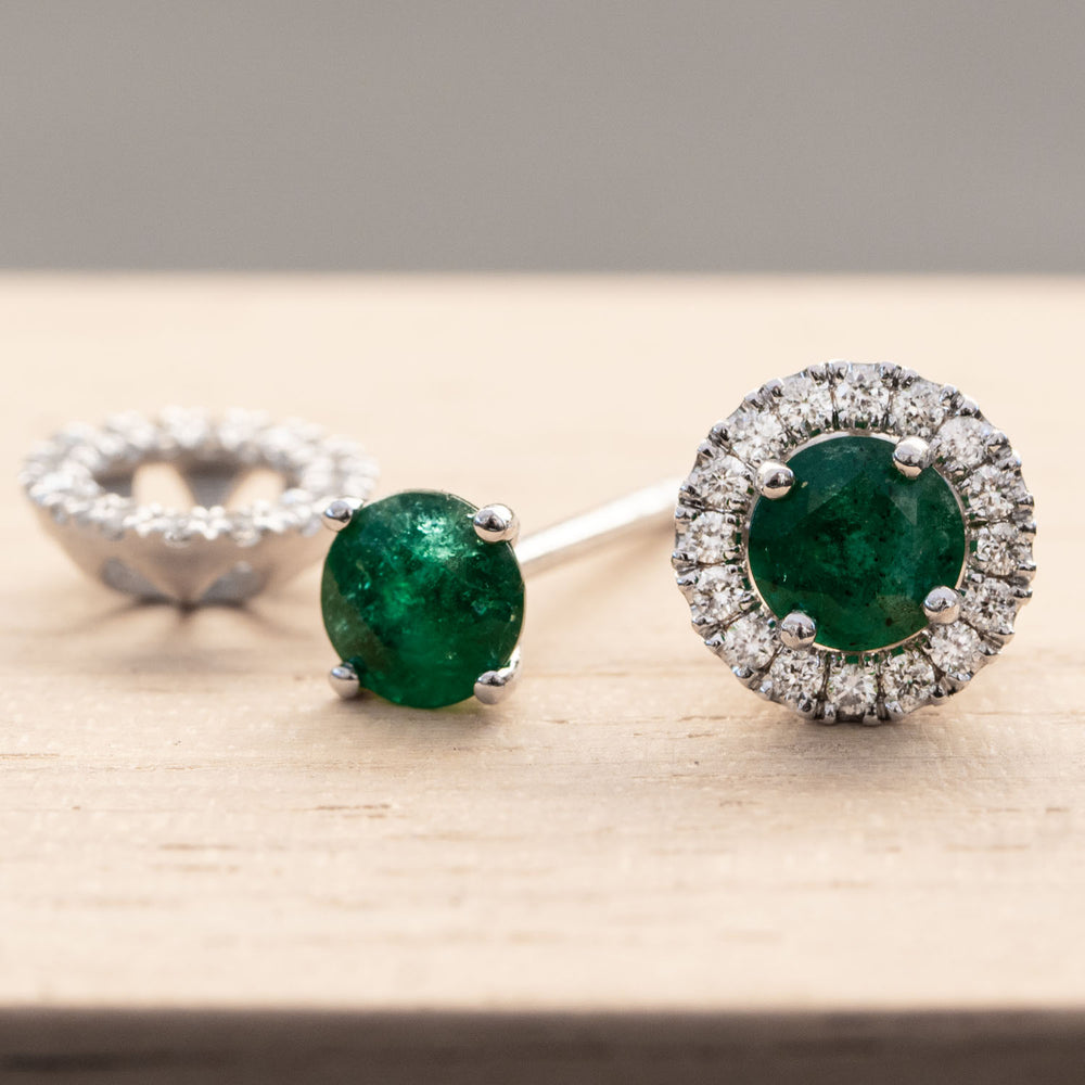 Evelina - 1.70 carat round natural emerald earrings with 0.20 carat natural diamonds - 2 IN 1