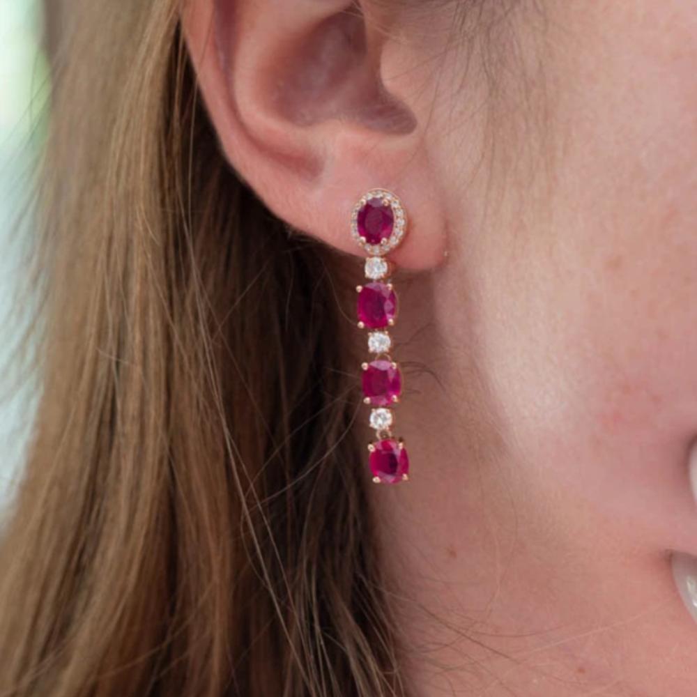 Penina - 6.57 ct oval ruby earrings with 0.78 carat natural diamonds