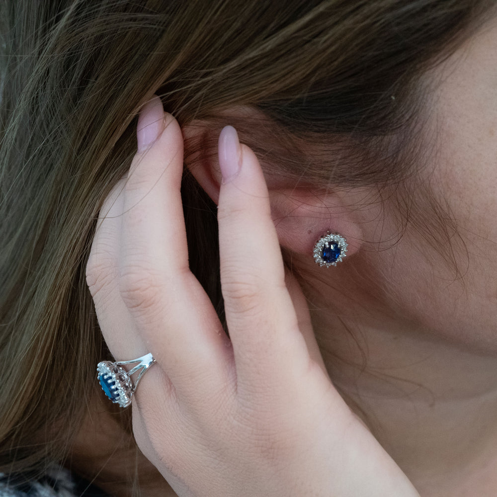 Aymelina - 9.35 carat oval sapphire earrings with 0.69 carat natural diamonds