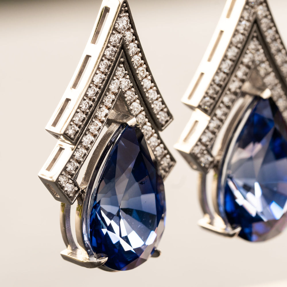 Gaia - 6.31 carat pear sapphire earrings with 0.70 carat natural diamonds
