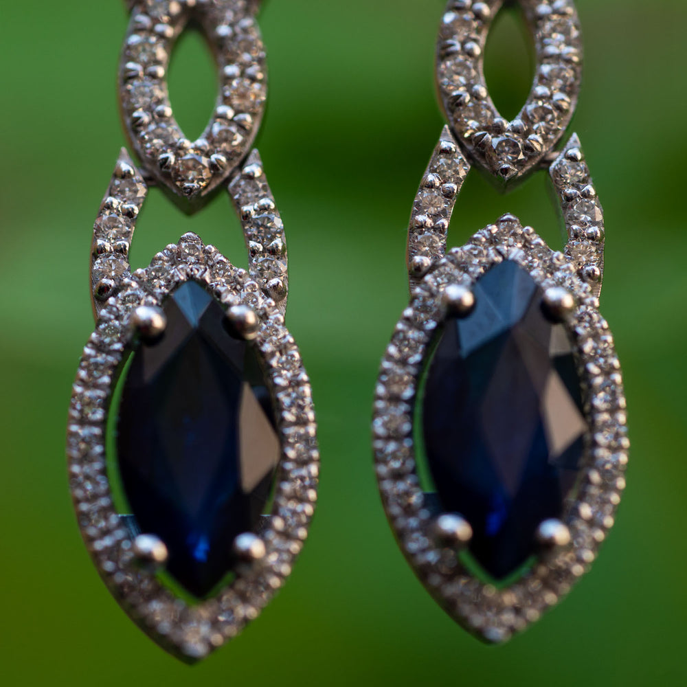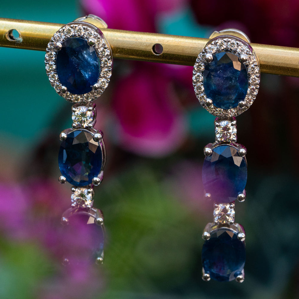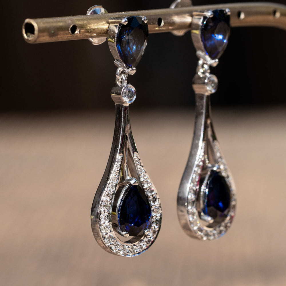 Savia - 14.55 carat Oval & pear sapphire earrings with 0.51 carat natural diamonds