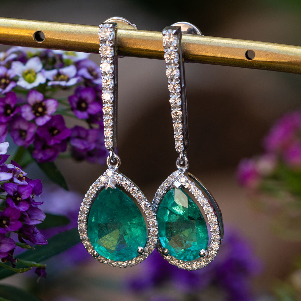 5.52 carat Emerald Drop Earrings with 1.16 Natural Diamonds