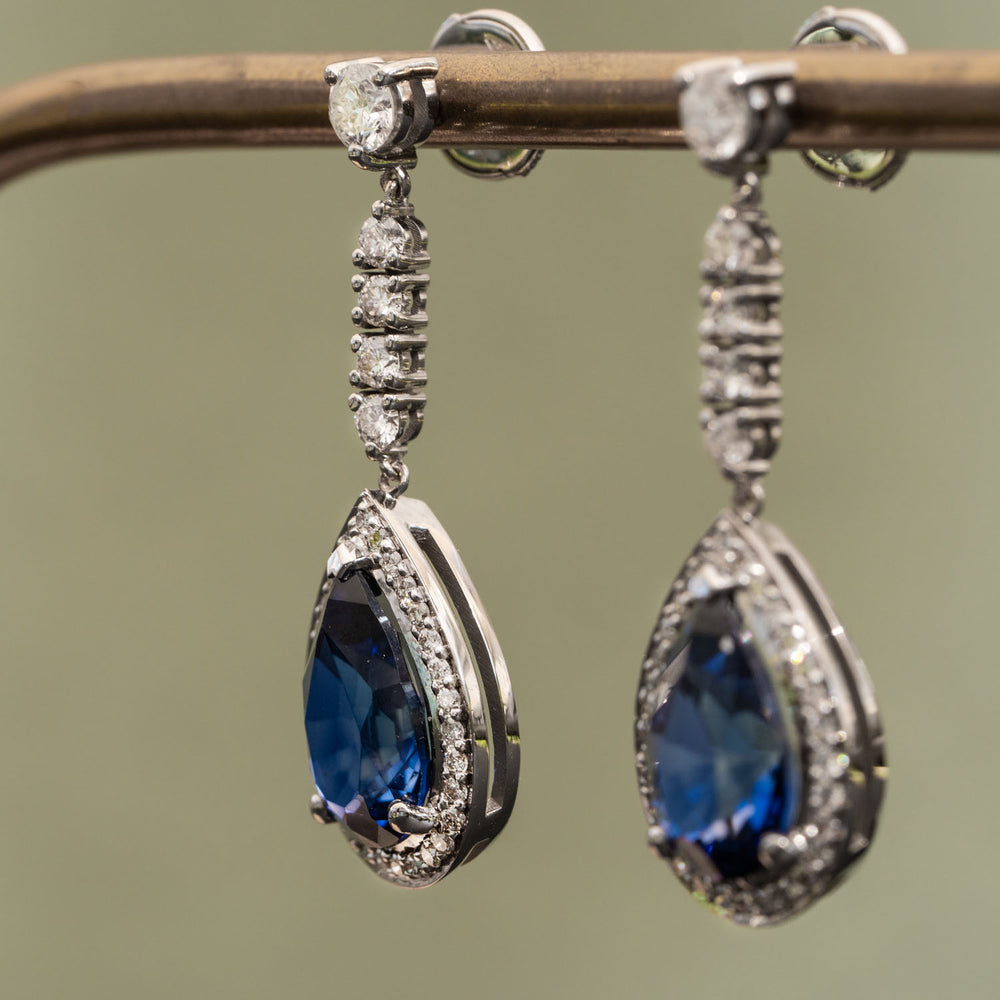 Elena - 6.83 carat pear sapphire earrings with 1.20 carat natural diamonds
