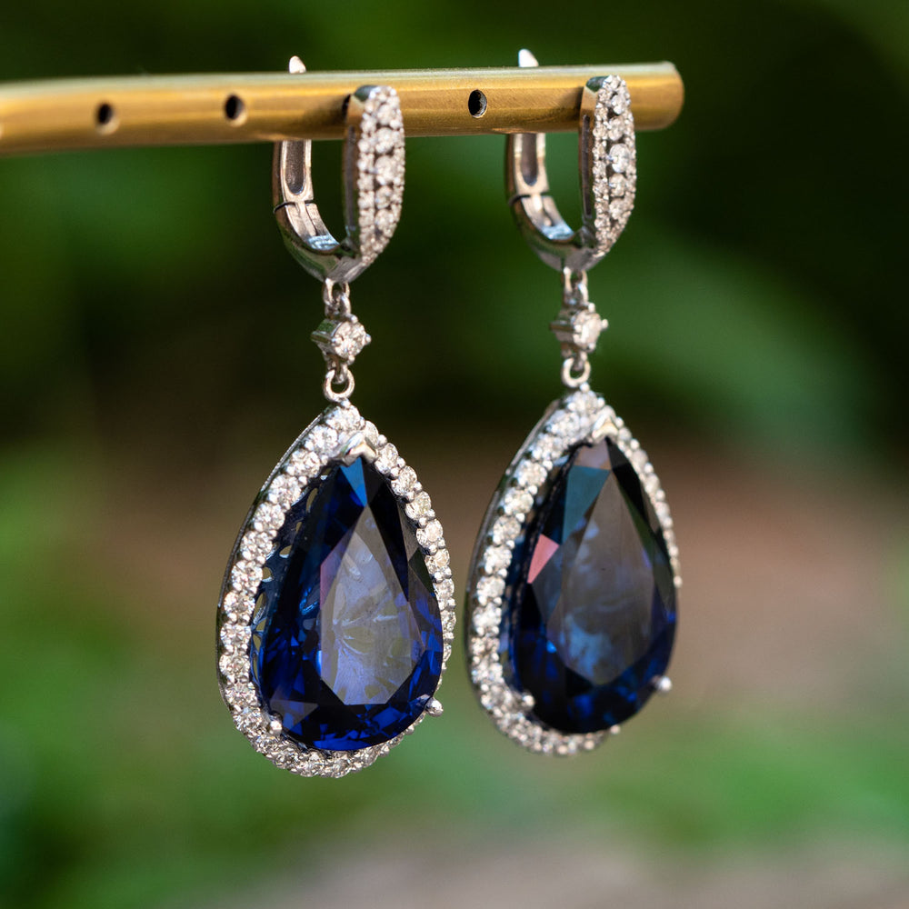 Andrea - 24.00 carat pear sapphire earrings with 1.31 carat natural diamonds