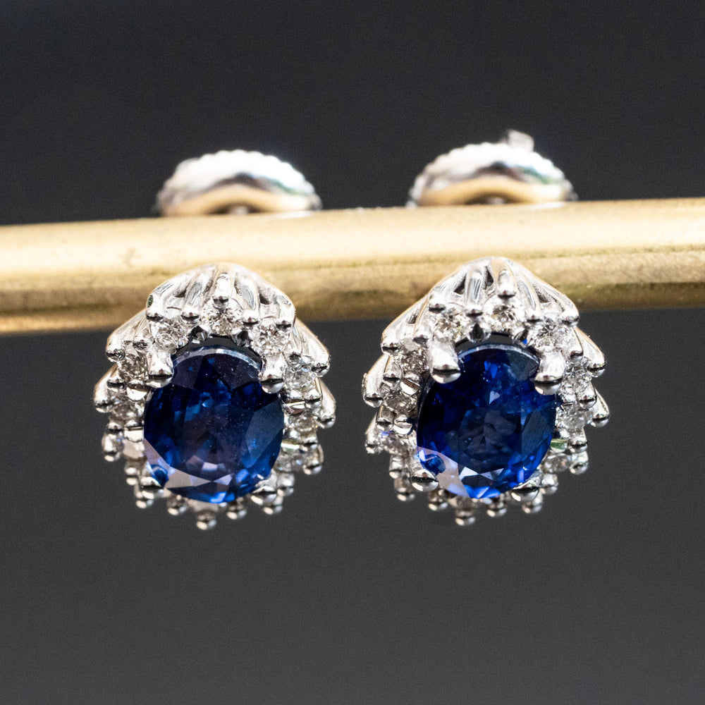 Romana - 3.96 carat oval sapphire earrings with 1.00 carat natural diamonds