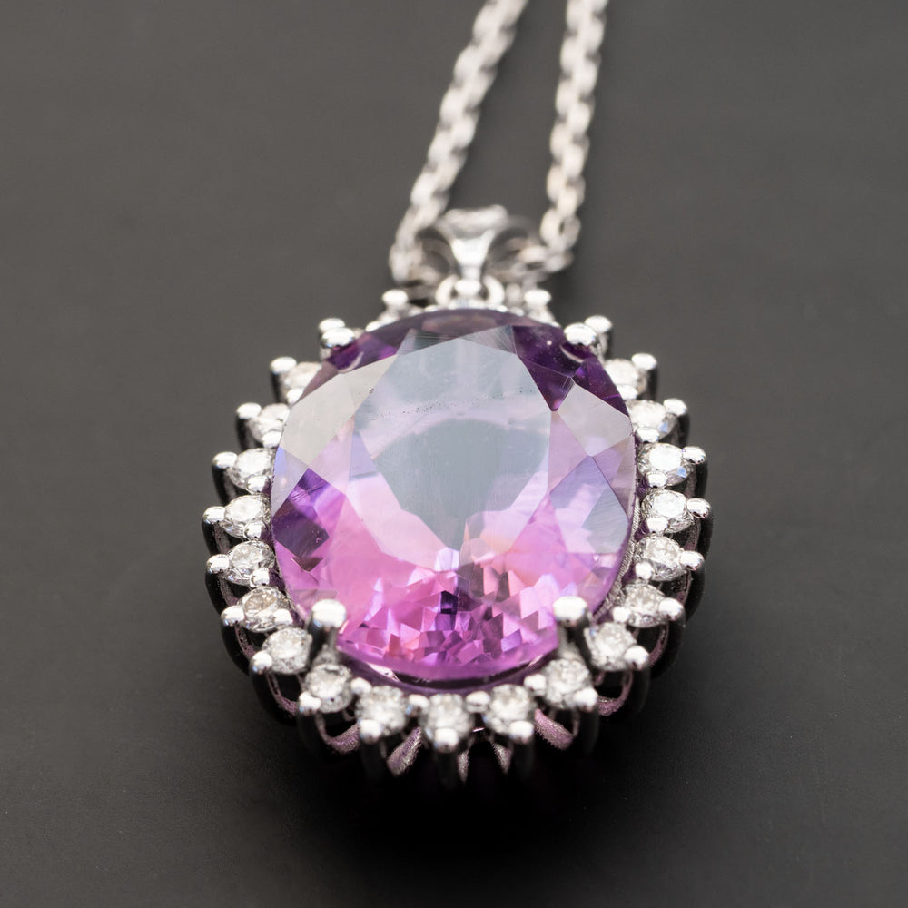 Adelina - 8.00 carat oval amethyst pendant with 0.55 carat natural diamonds