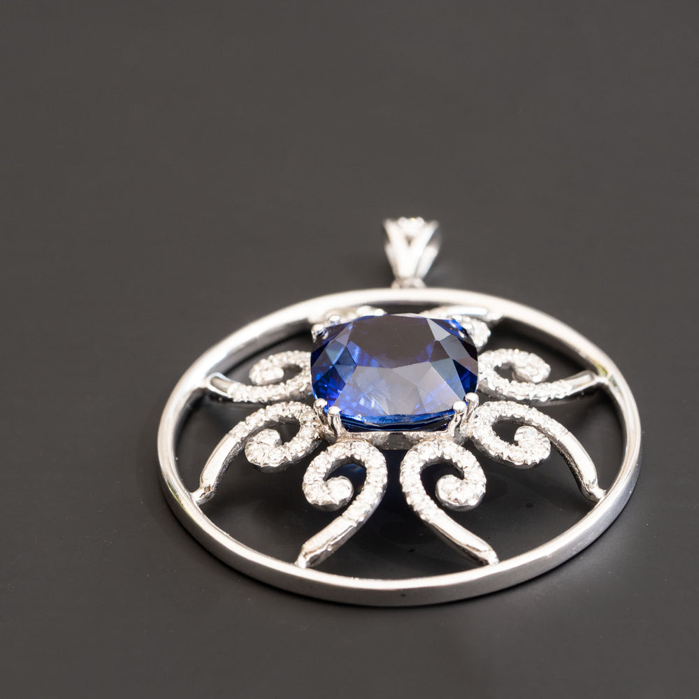Carmella - 9.87 carat cushion sapphire pendant with 0.50 carat natural diamonds