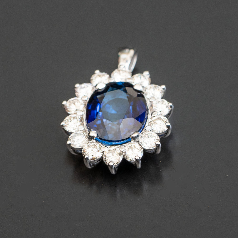 Alessia - 5.00 carat oval sapphire pendant with 1.00 carat natural diamonds