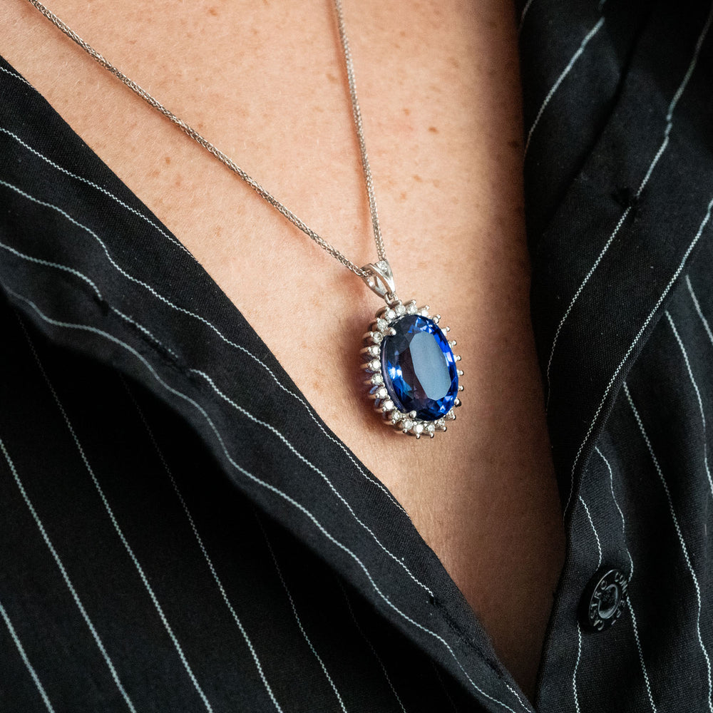 Domenica - 23.00 carat oval sapphire pendant with 0.95 carat natural diamonds