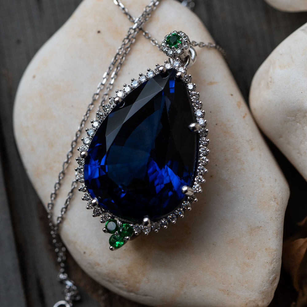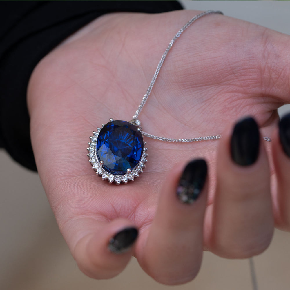 Large Gemstone Necklace, Blue Sapphire Diamond Pendants, Luxury Pendants