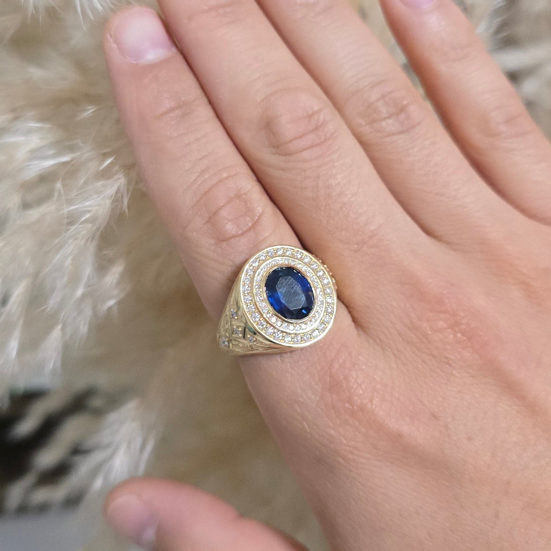 Designed exclusively by Lilo Diamonds, this one-of-a-kind men’s signet ring embodies strength, elegance, and individuality. At its heart lies a royal blue 3.03 carat oval blue sapphire (10×8 mm), its deep blue hue magnified by a striking double halo of 0.75 carats of natural brilliant diamonds.