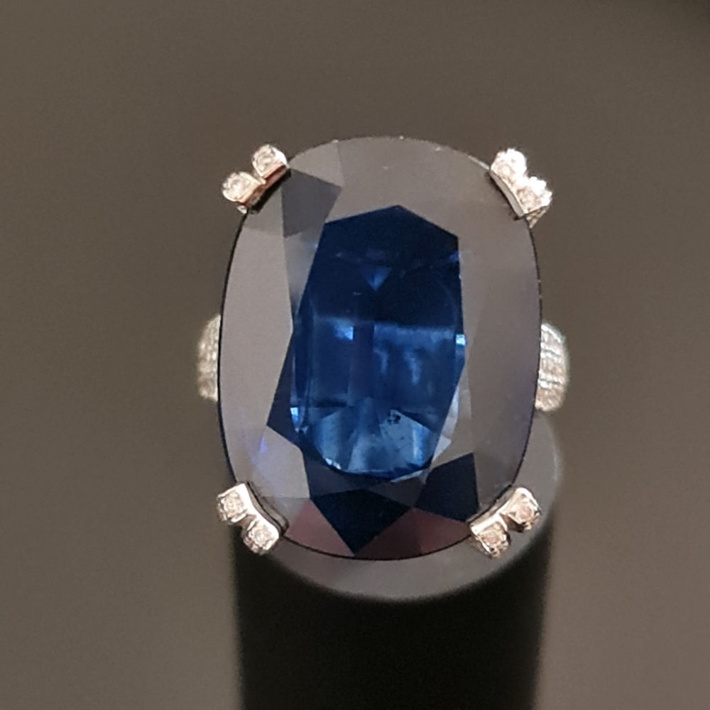 Diona - GRS certificate - One of a Kind - 22.22 carat natural sapphire ring with 2.13 carat natural diamonds
