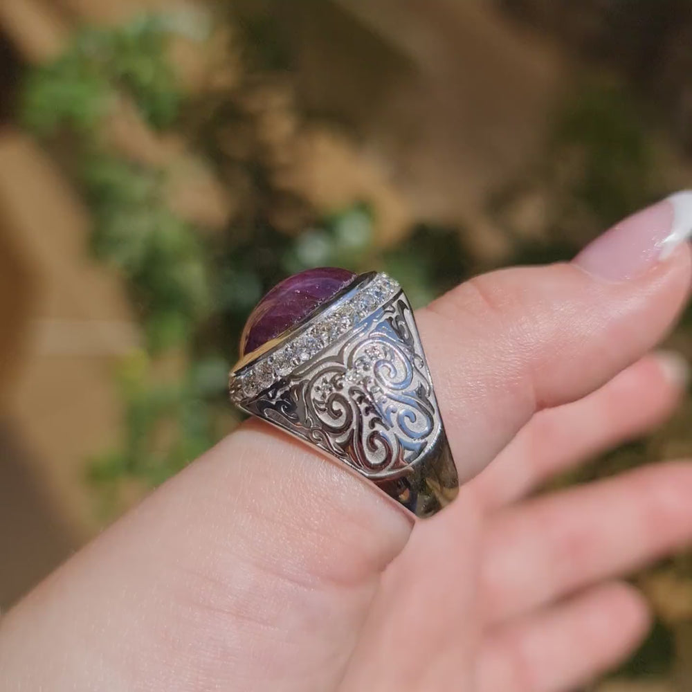 Connor- 14.25 natural star ruby ring with 1.40 carat natural round diamonds