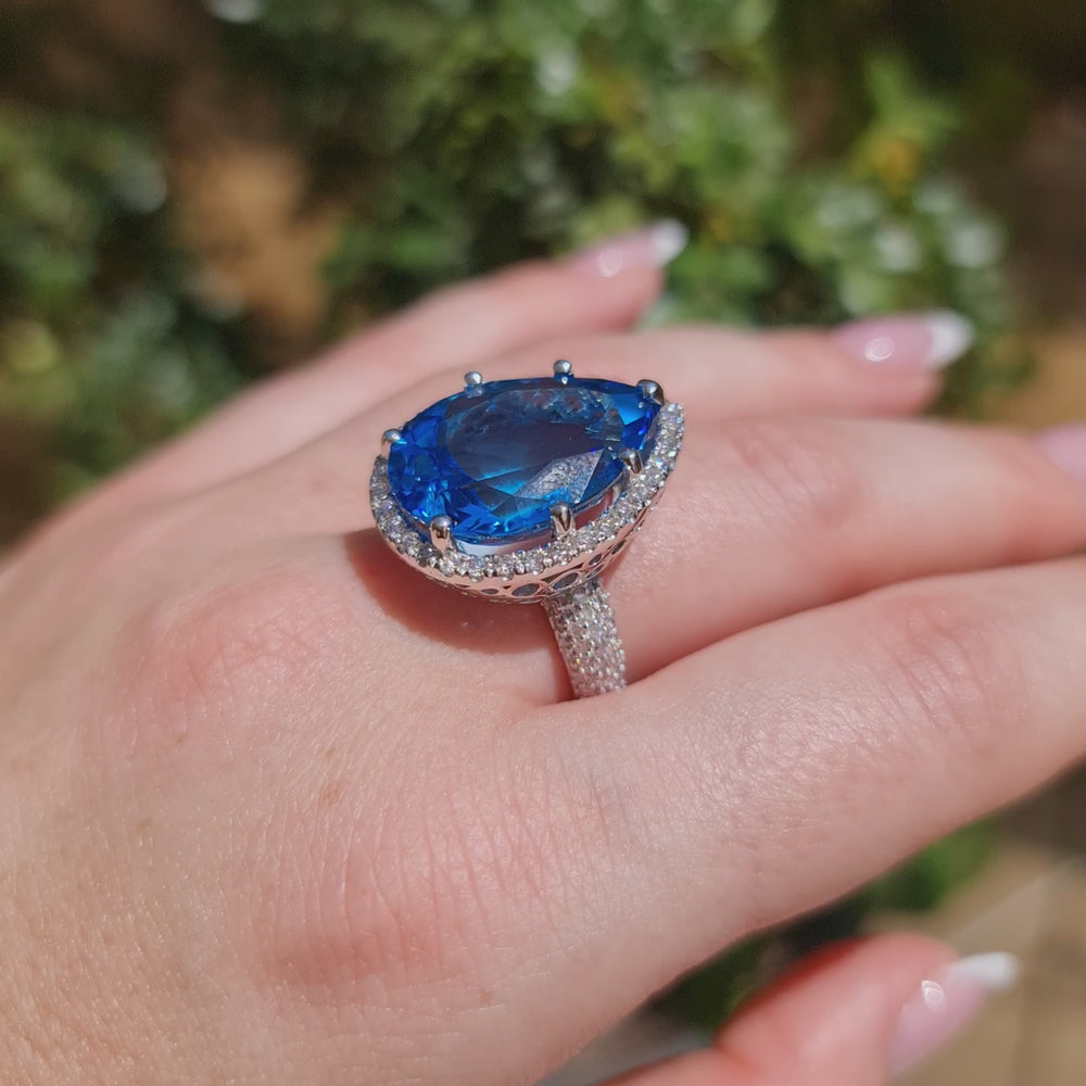 Brianna - 18.00 carat natural swiss blue topaz ring with 1.20 carat diamonds
