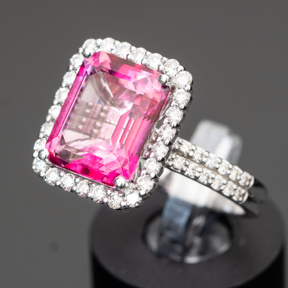 Ariel - 4.20 carat natural pink topaz ring with 1.52 carat natural diamonds