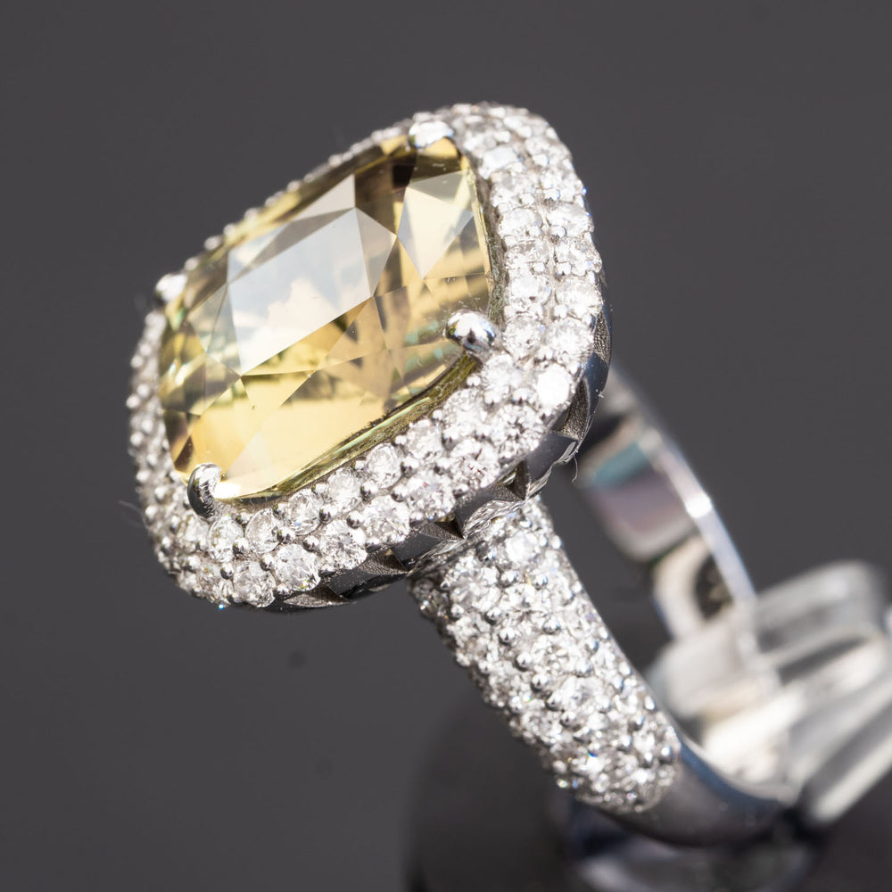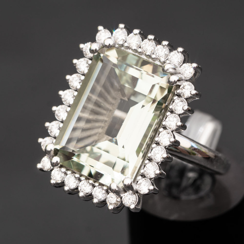 Athena - 18.70 carat Natural Green Amethyst ring with 1.37 carat diamonds