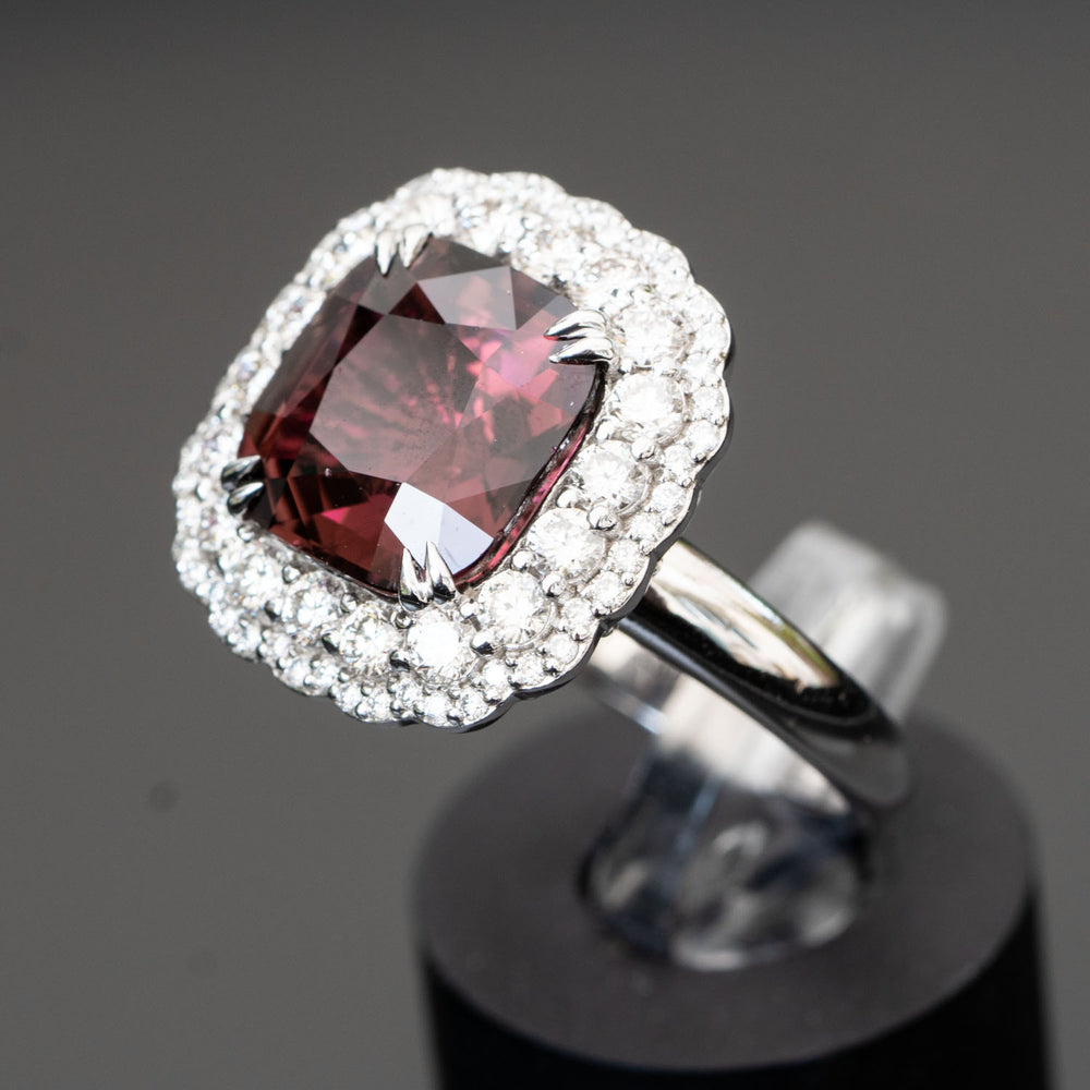 Aurora - 4.86 carat Red Tourmaline ring with 1.16 carat natural diamonds D VVS