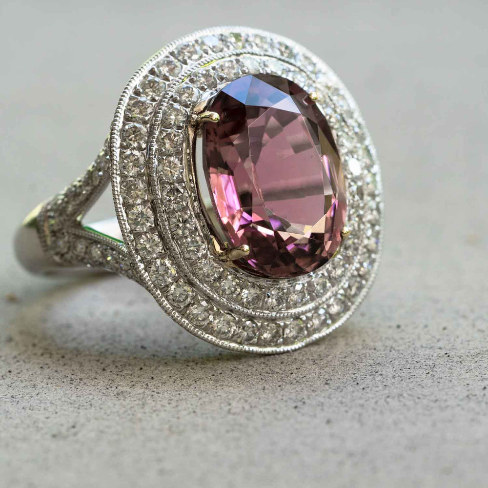 Aine - 5.10 carat natural pink Tourmaline ring with 1.61 carat natural diamonds