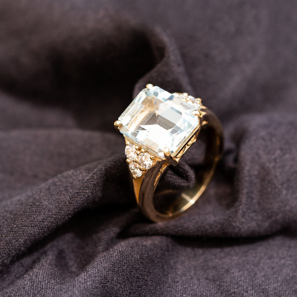Juliette - 10.00 ct emerald aquamarine diamond ring - Princess Diana aquamarine ring