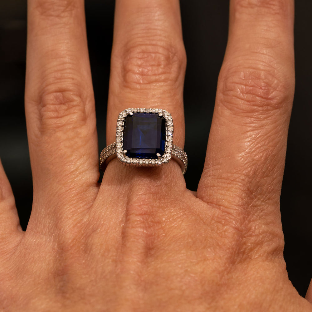 Nicollete - 7.97 carat emerald sapphire ring with 0.77 carat natural diamonds
