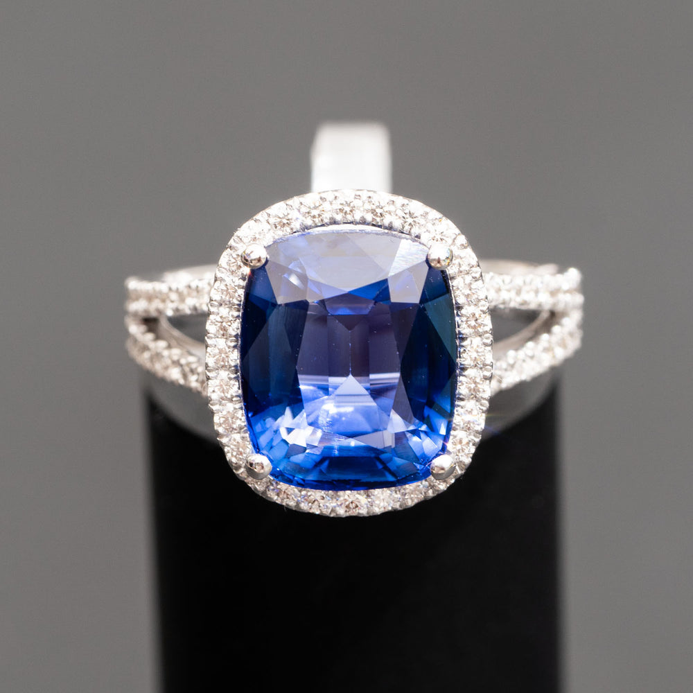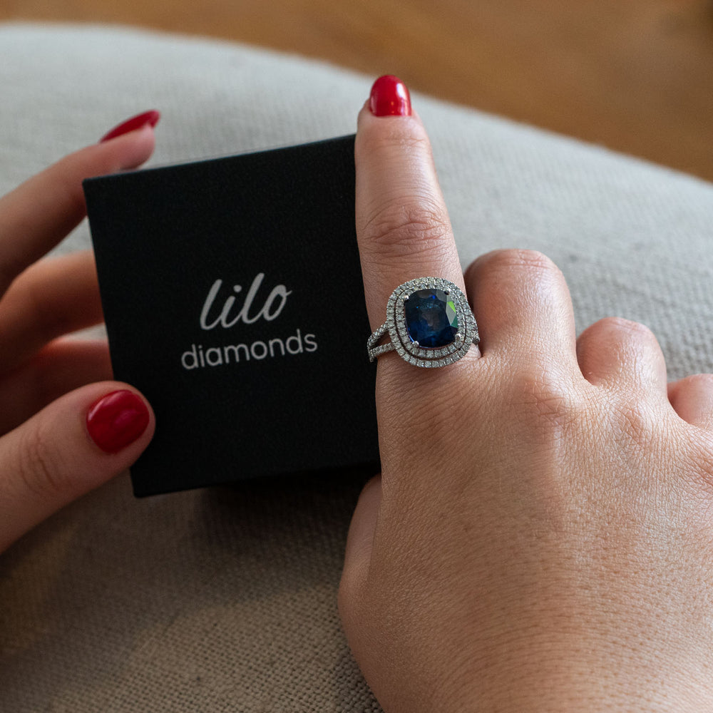 Grace - 6.50 carat cushion sapphire ring with 0.66 carat diamonds