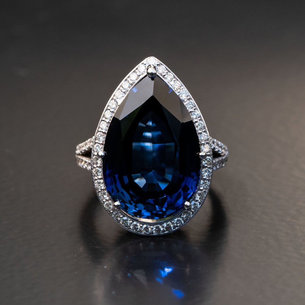 Regina - 27.00 carat pear sapphire ring with 1.10 carat natural diamonds