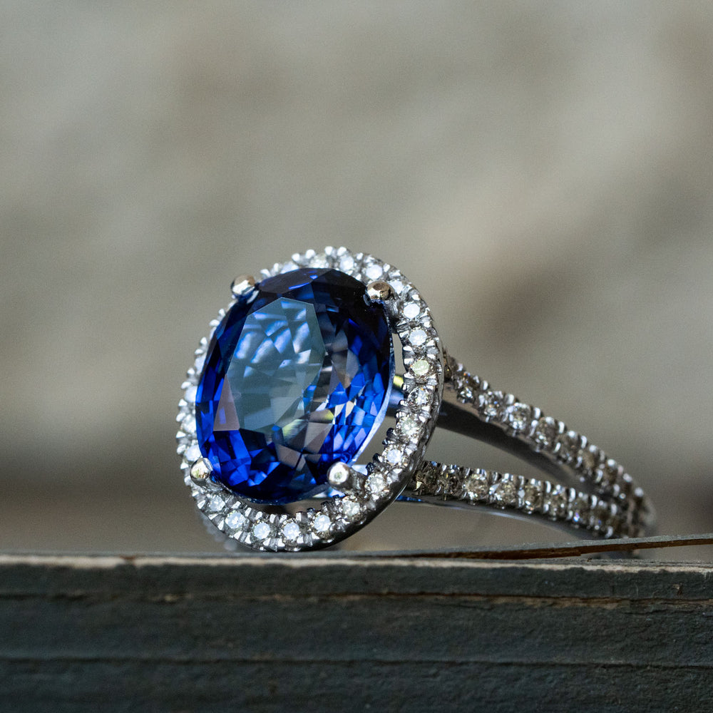 Margot - 6.31 carat oval sapphire ring with 0.66 carat natural diamonds
