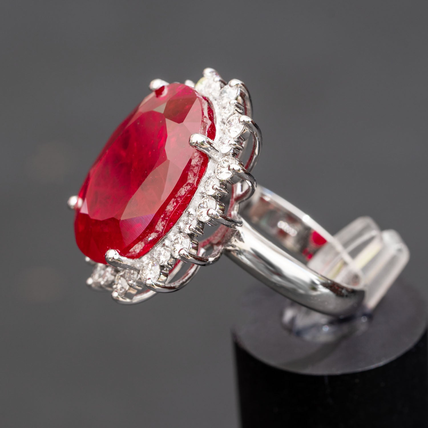 This gorgeous red ruby ring will impress everyone around you. It features a large oval 15mmX20mm carat gemstone, adorned with 1.30 carat natural diamonds.