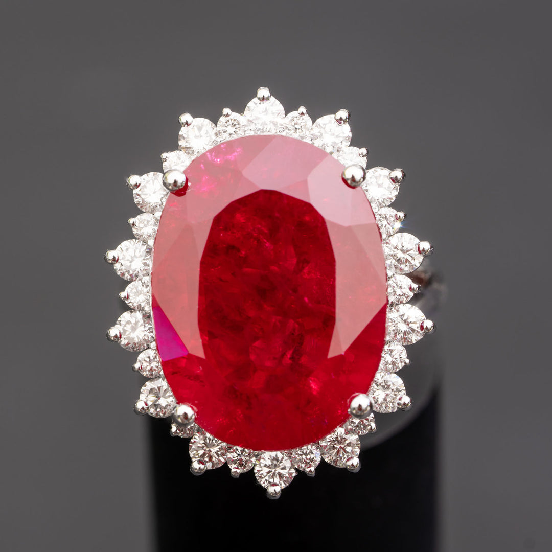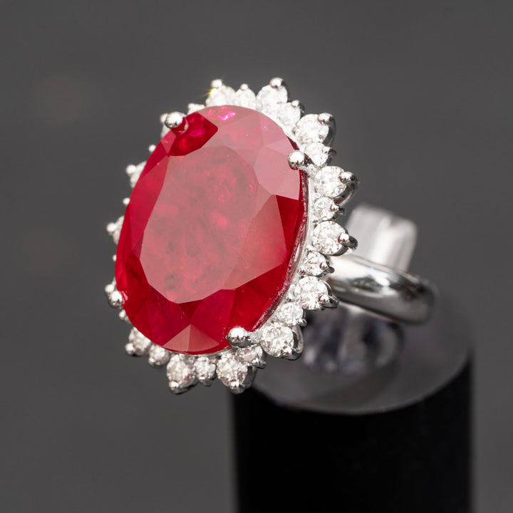 Kira - 18.00 carat oval ruby ring with 1.30 carat natural diamonds