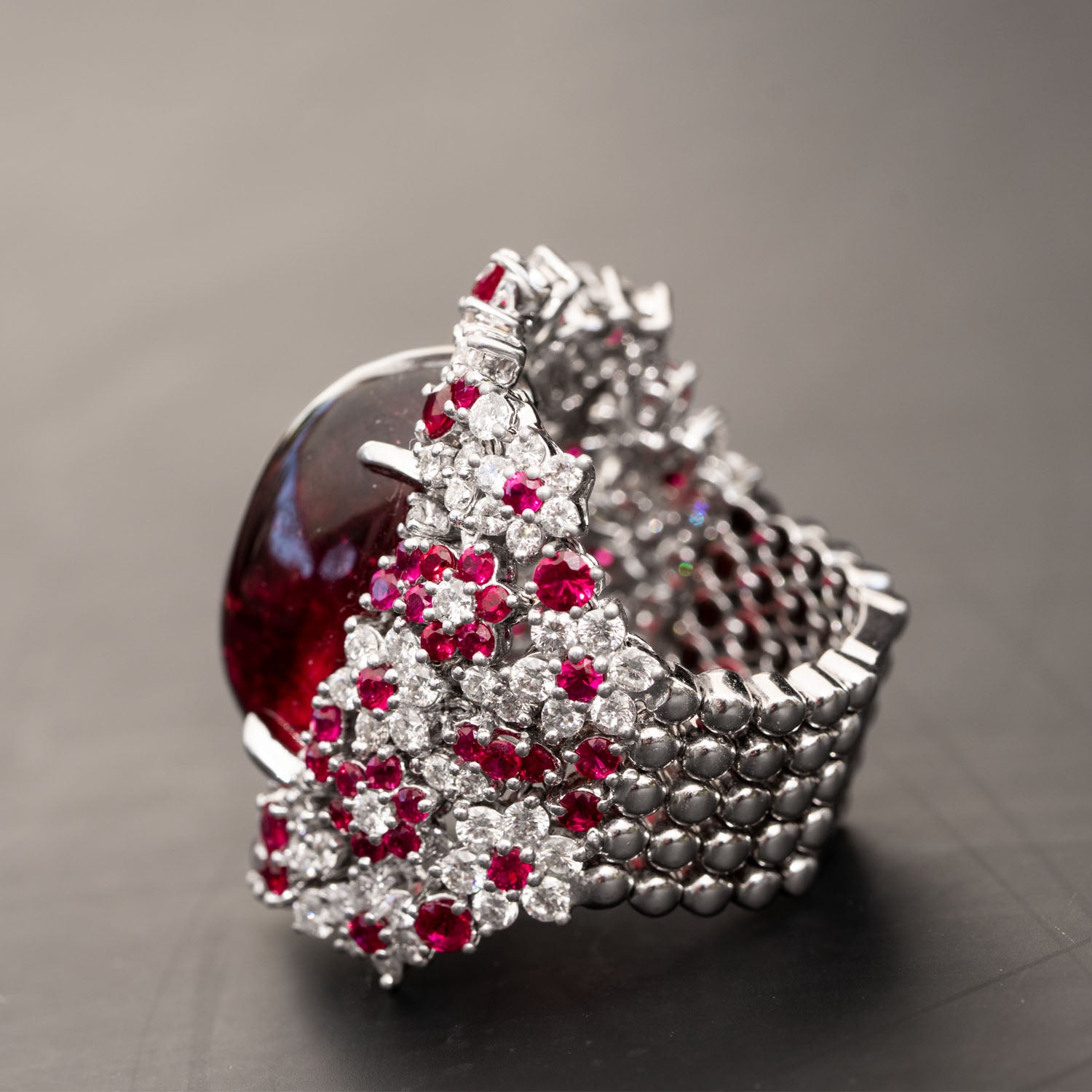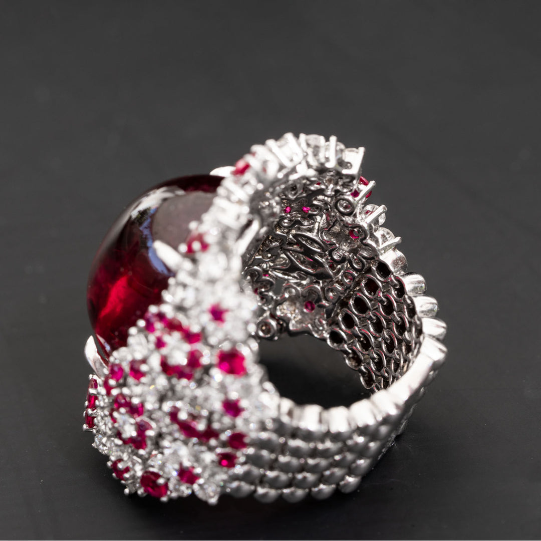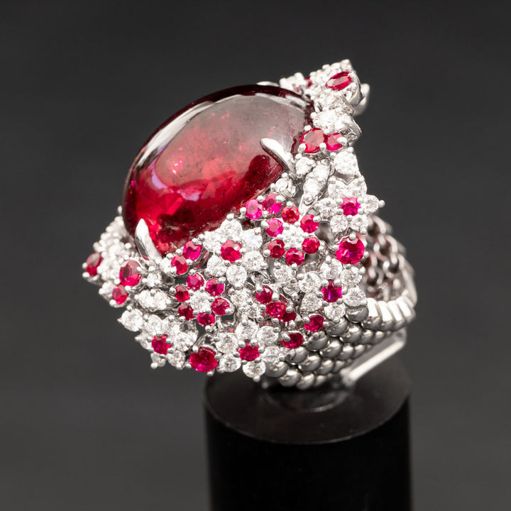 Gaya - 23.52 natural rubellite ring with 2.56 carat natural diamonds and 2.60 carat natural ruby