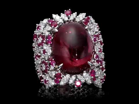Gaya -  23.52 natural rubellite ring with 2.56 carat natural diamonds and 2.60 carat natural ruby